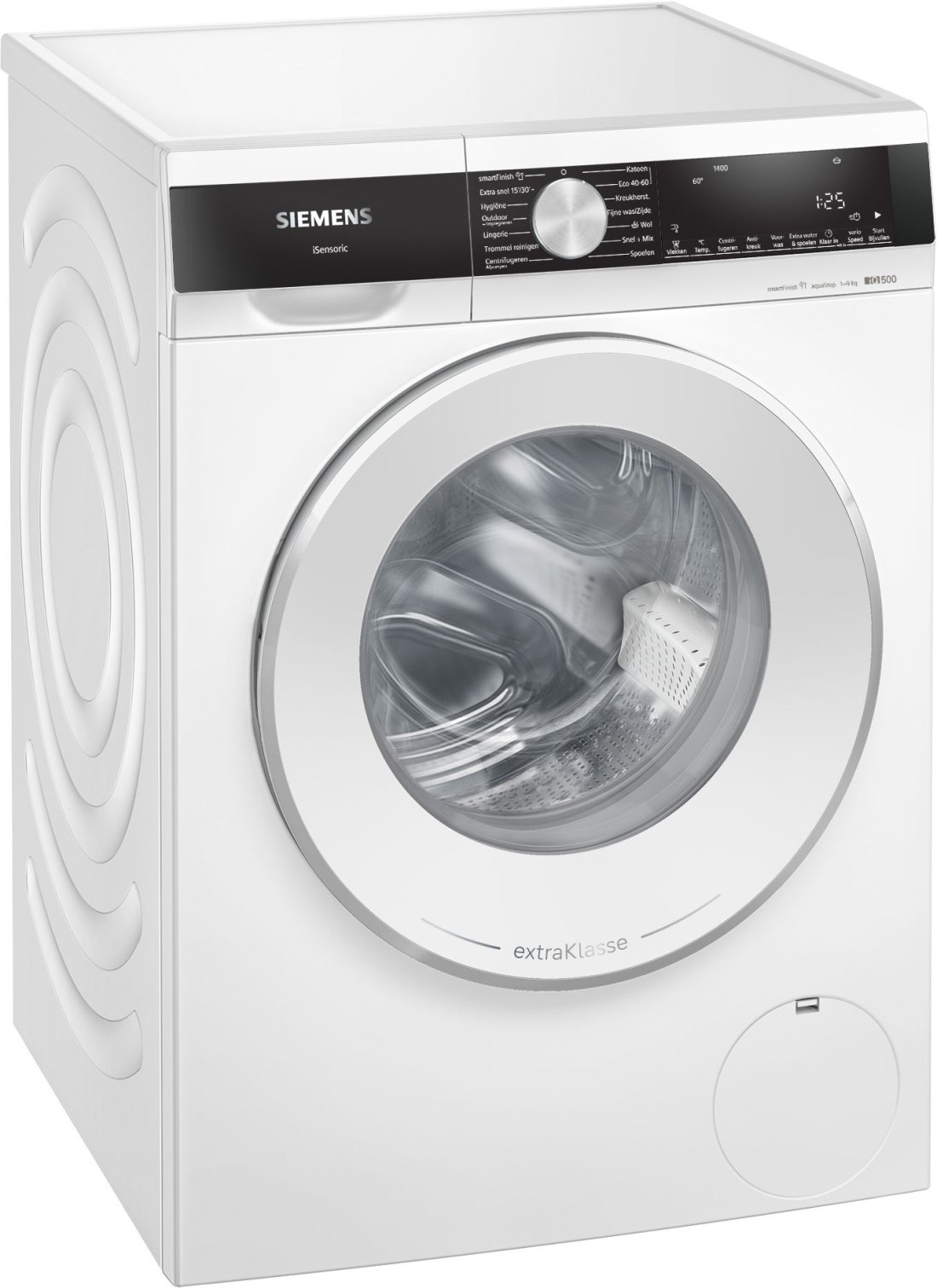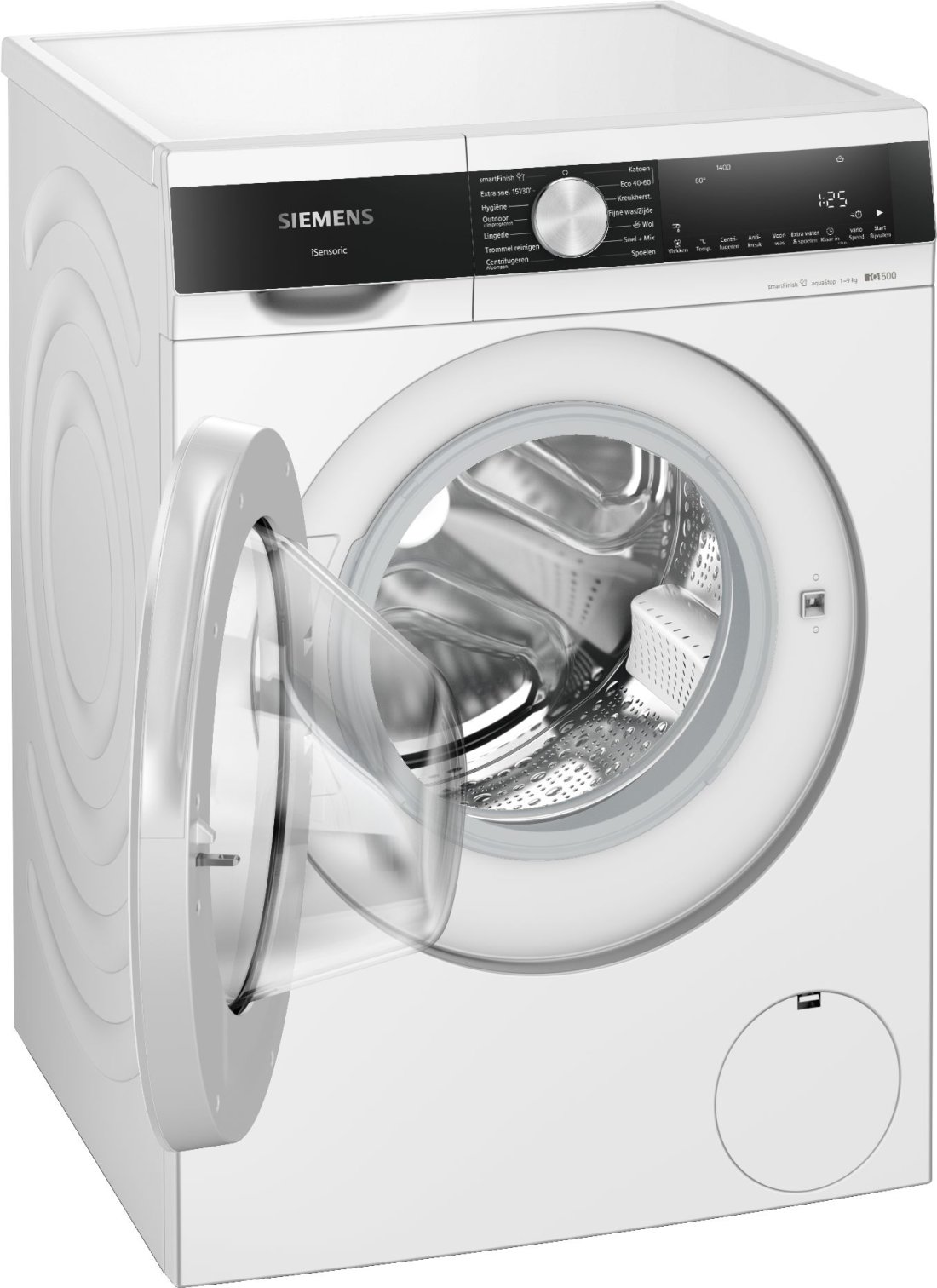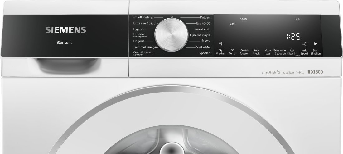 Standaard programma’s: Katoen, Kreukherstellend, Fijne was/Zijde, Wol handwas Speciale programma’s: Trommel reinigen (met herinneringsfunctie), Lingerie, Outdoor+Impregneren, Afpompen/Centrifugeren, Snel + Mix, Extra spoelen, Extra snel 30’/15’, Hygiëne varioSpeed: Tot 65% sneller wassen*** smartFinish: stoomprogramma om droge kledingstukken te ontkreuken Speciaal antiVlekken systeem: 4 speciale vlekkenprogramma’s (boter/slaolie, bloed, rode wijn, gras), toepasbaar op de standaard programma’s TouchControl tiptoetsen: Anti-kreuk, Klaar in, Vlekkenautomaat, start/bijvullen, temperatuur, varioSpeed, Voorwas, keuze voor centrifugeersnelheid, Extra water/niet centrifugeren Bijvulfunctie: Pauzeer het draaiende wasprogramma, om vergeten wasgoed in de trommel bij te voegen. Groot LED-display voor programmaverloop, max. centrifugesnelheid, resttijdweergave, 24 uur eindtijduitstel en beladingscapaciteit softDial Volume van trommel: 65 l Trommelverlichting: LED waveTrommel: bijzonder schone en effectieve wasverzorging dankzij de unieke trommelstructuur Trommelreiniging: optimale verzorging en reiniging van de trommel en interieur, met herinneringsfunctie Bijvulfunctie 32 cm vulopening, Vuldeur in alu-look met wit met 165° te openen deur iQdrive motor voor extra stilte, zuinigheid en lange levensduur incl. 10jr garantie 10 jaar garantie op de koolborstelloze iQdrive motor antiVibration design: meer stabiliteit en stilte Demo-programma, Vlekkentabel waterPerfect Plus: voor efficiënt gebruik van water, zelfs met kleine belading, dankzij intelligente sensortechnologie Verbruiksindicator: telt aantal gedraaide programma’s aquaStop waterbeveiliging: Siemens garantie bij waterschade - gedurende de gehele levensduur* Bodemplaat voor extra bescherming en geluidsisolatie Schuimherkenning: detecteert overdosering Onbalansherkenning Kinderbeveiliging op de deur Signaal einde programma Easy Clean lade Doseringshulp voor vloeibaar wasmiddel Onderbouwbaar onder 85 cm nishoogte Afmeting apparaat (H x B): 84.8 cm x 59.8 cm Diepte apparaat: 59.0 cm Diepte apparaat incl. deur: 63.6 cm Diepte apparaat met geopende deur: 107.3 cm