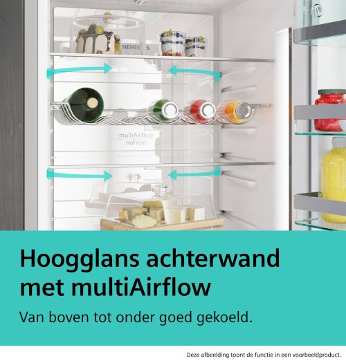 - Hoogglans achterwand met multiAirflow: koelt alles in de koelkast even effectief.