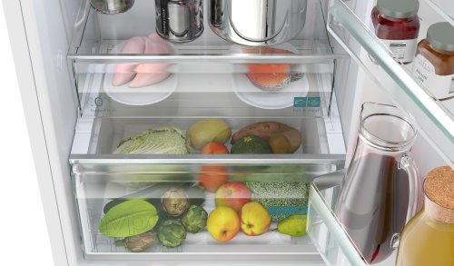 noFrost koel-vriescombinatie met hyperFresh lade om groente en fruit langer vers te houden, en noFrost om nooit meer te hoeven ontdooien.